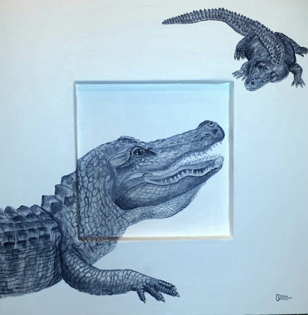 "The Dolphins Playtime" Acrylic on shadowbox canvas, 12 wide x 36 tall